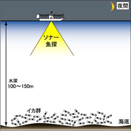 操業過程① 探索 操業過程② 海底付近でLED水中灯を点灯して