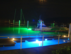 水中照明は光色を選べます。季節や時間帯によって魚も集まってきます