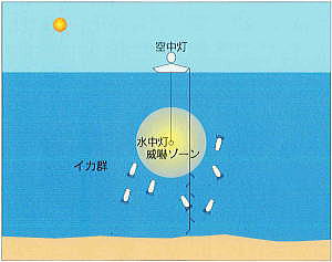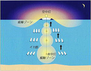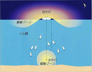 • 1985年,弊社が世に問うたSWSY(イカ釣用水中灯システム)は海外大型イカ釣船に完全に定着し中小型船にも普及し始めた事実は,そこにイカ釣漁業の本質的な問題があったと思われるからです。ご承知のように水中灯は空中から照射される集魚灯に比べはるかに効率が高いので,空中からでは不可能な深海での集魚を非常に有効に行うことが可能になります。