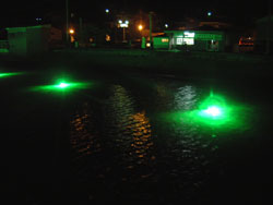 - 水中灯は水中灯設置スタンドに固定し,必要に応じてこのスタンドごと取外しや移動が可能です。 悪天候時には事前に水中灯設置スタンドごと陸上へ非難したり,お祭り等のイベント時には河川に設置してライトアップするといった,柔軟な運用が可能です。また,簡易設置式であるため,水中灯の配置も自由に変更することが可能です。